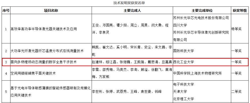 赵建林教授团队完成的项目“面向多物理场动态测量的数字全息干涉技术”荣获技术发明一等奖,主要完成人包括赵建林、邸江磊、张继巍、王凯强、戴思清、豆嘉真。这是我校在信息光学领域取得的一项重要标志性成果。