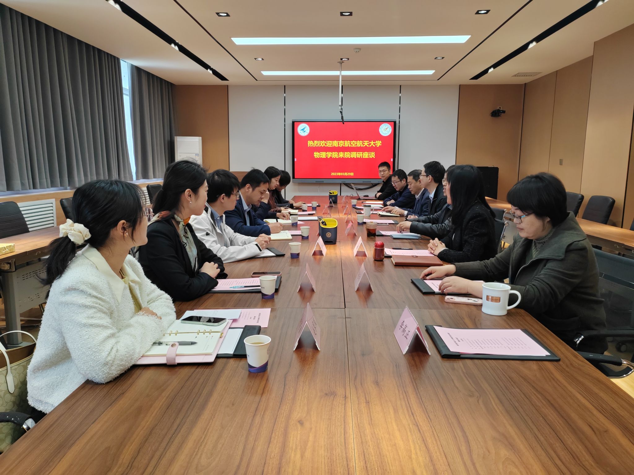 3月29日上午,南京航空航天大学物理在线看片党委书记陈修文、院长刘友文、党委副书记欧珊等一行7人来在线看片